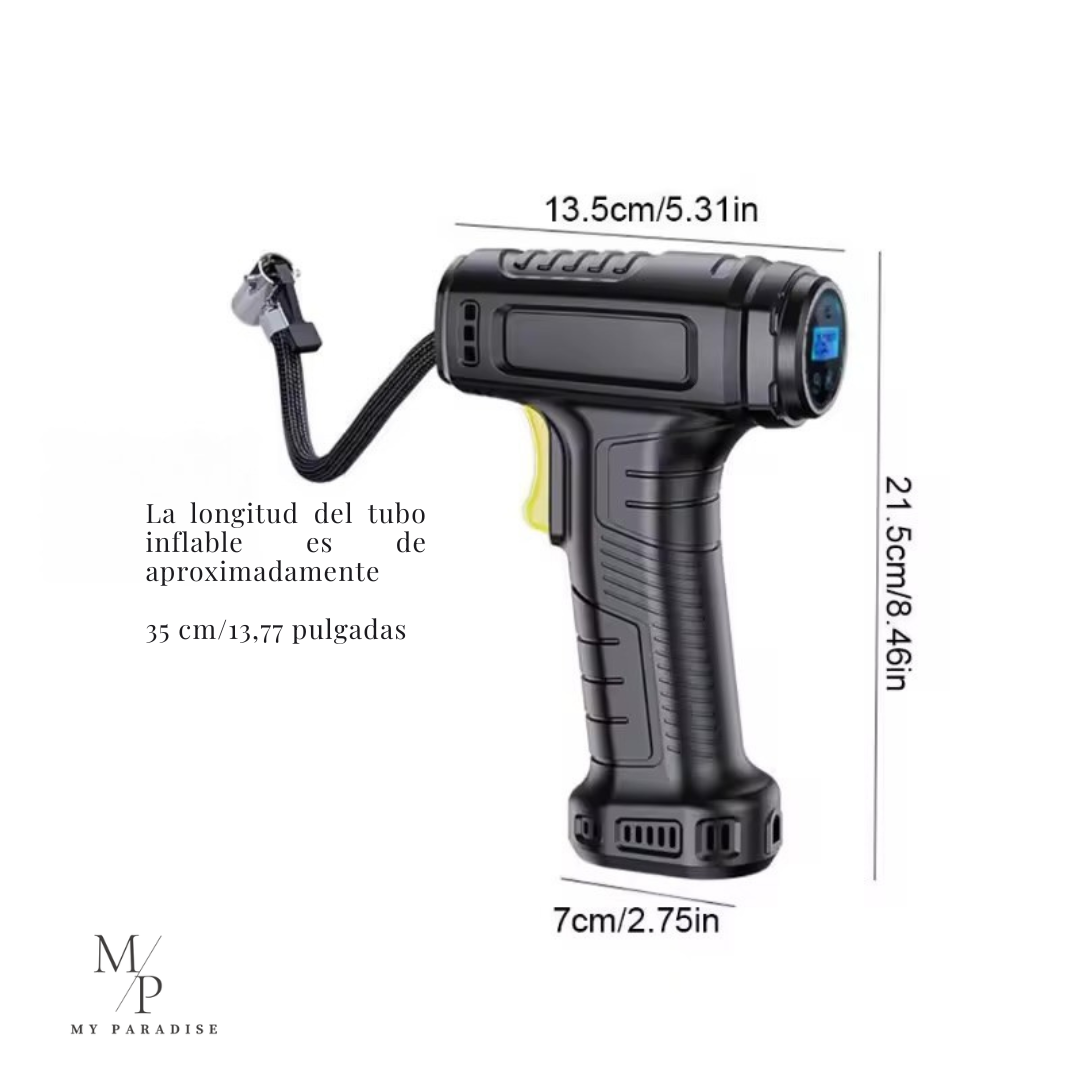 Es un inflador portátil digital multifuncional , con pantalla LED, linterna integrada y apagado automático. Ideal para neumáticos de auto, moto, bicicleta, pelotas, colchones inflables y más.